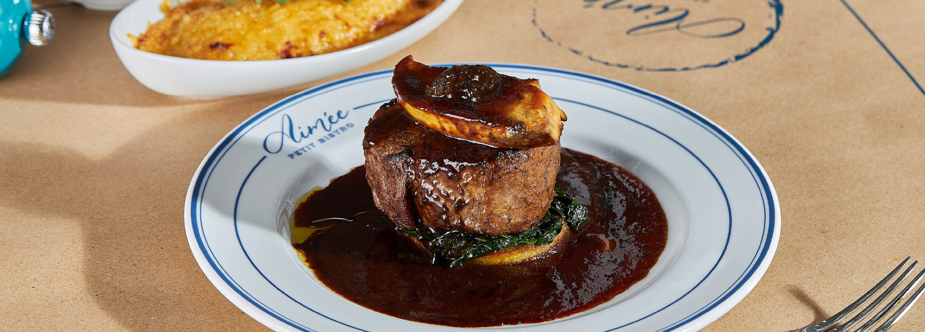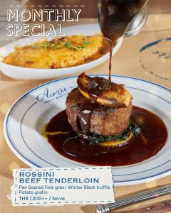 a luxurious creation of pan-seared beef tenderloin, foie gras, winter black truffle, and potato gratin. Carefully crafted to bring warmth, elegance, and rich flavors to your festive dining experience.