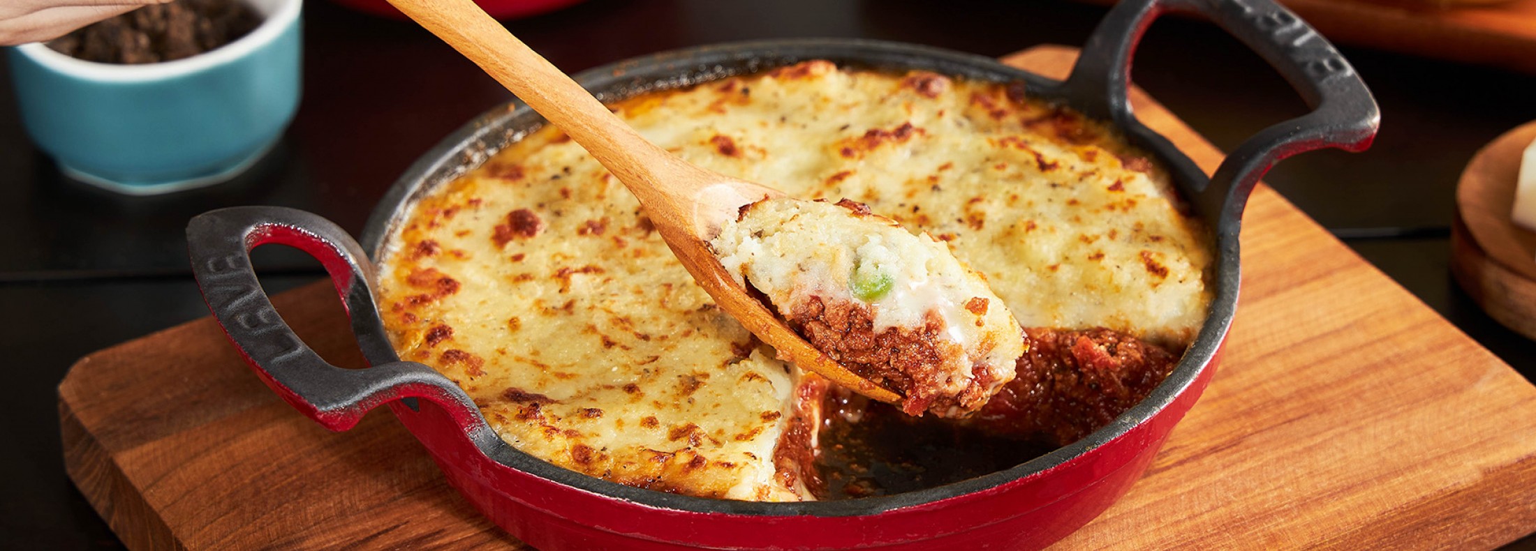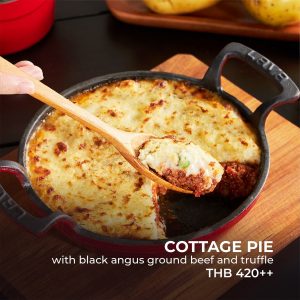 Rich, aromatic, and full of flavor made with premium Angus beef sautéed in our signature truffle sauce, topped with smooth, creamy mashed potatoes. Served piping hot in a cast-iron skillet to preserve heat and enhance the taste. Price: 420++ per serving