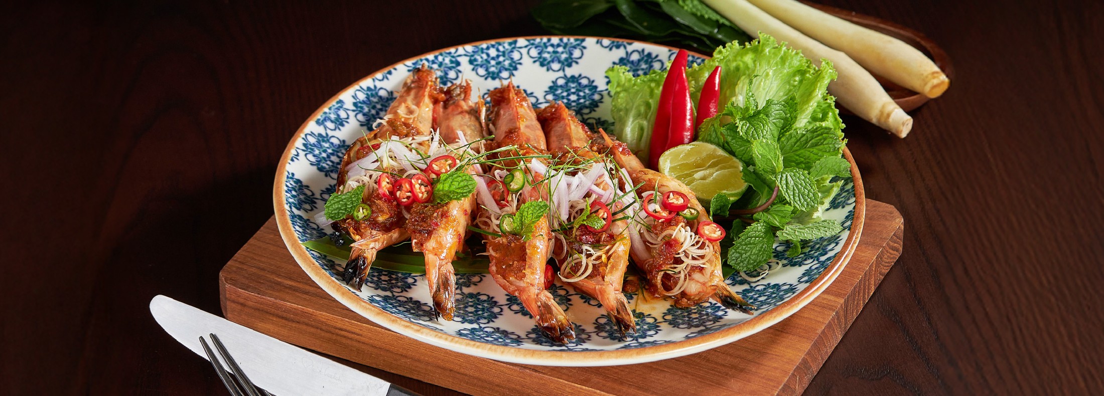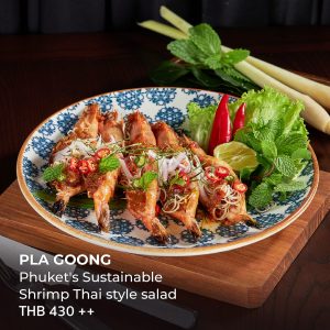 Savor the bold flavors of our Pla Goong, a Thai-style grilled prawn salad. Made with sustainable Phuket prawns, each bite is fresh, juicy, and packed with vibrant, zesty seasoning that hits all the right notes. Perfect for those craving an authentic Thai taste with a delightful kick. Price THB 430++