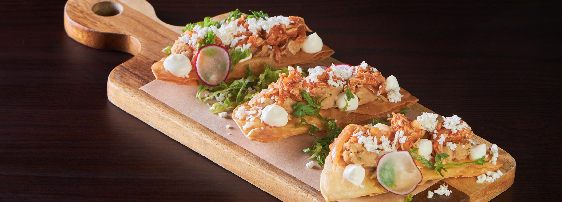 Enjoy crunchy toasted corn tortillas layered with shredded chicken in smoky chipotle sauce, accented with onions and jalapeño. A bold Mexican favorite, full of flavor and texture.