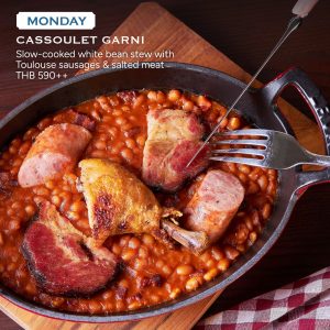 สตูว์ถั่วขาวสไตล์ฝรั่งเศส เคี่ยวกับไส้กรอกตูลูส และเนื้อ ราคา 590++ บาท