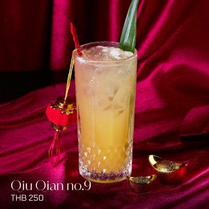 Qiu Qian No.9 – Jim Beam, Apricot Brandy, Lime Juice, Passion Juice, Peach Syrup และ Red Grenadine ความหวานละมุนผสมความเปรี้ยวเล็กน้อย